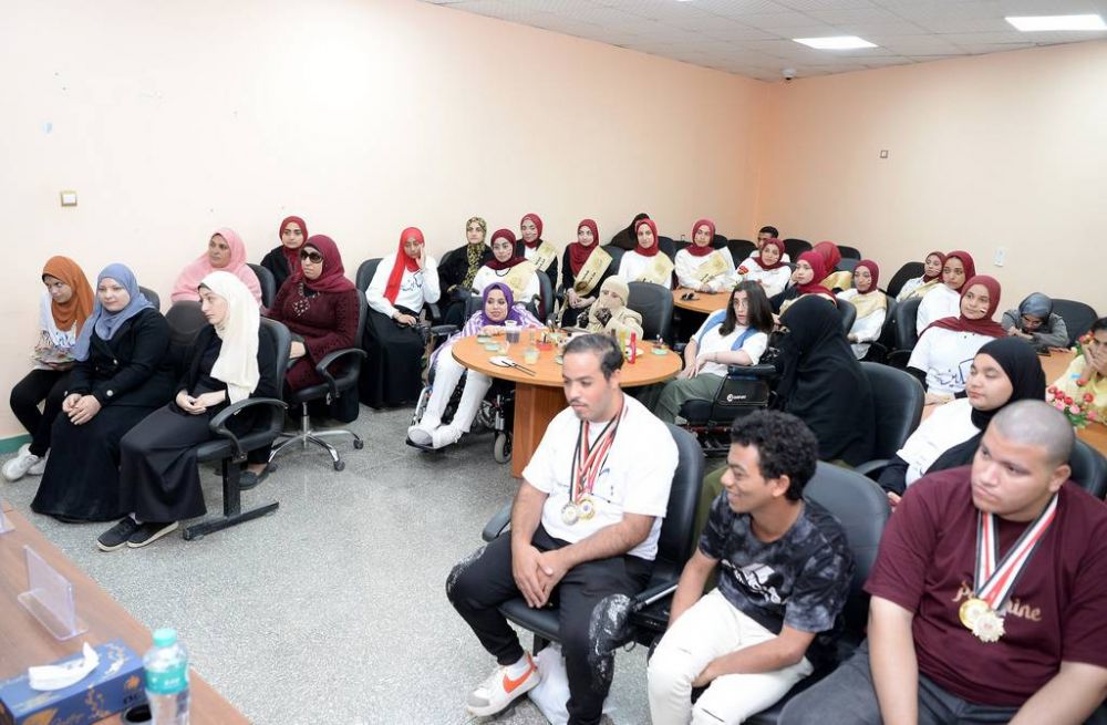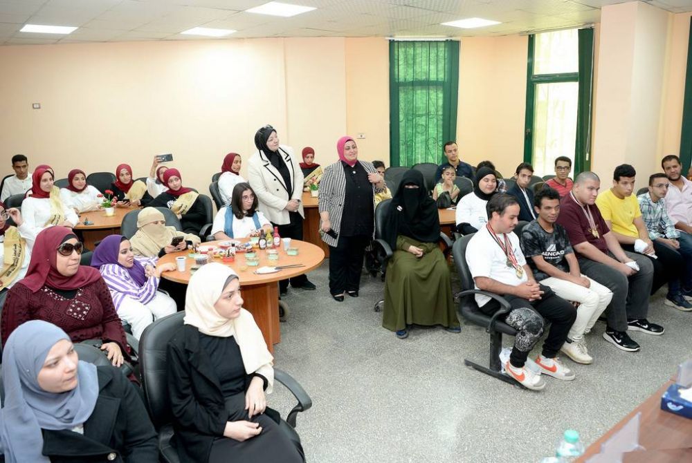 The events were attended by Prof. Mohamed Attia El-Bayoumi, Vice President of the University for Education and Student Affairs; Mr. Saad Abdel Wahab, Secretary General of the University; Dr. Nanees El-Beltagy, Director of the Center for Services for Persons with Disabilities; Dr. Ibrahim Abu Zeid, Deputy Director of the Center; Dr. Dalia Khalifa, Director of the Artistic Activities Department at the Student Welfare Administration; and a number of faculty staff, students with disabilities, and university students.