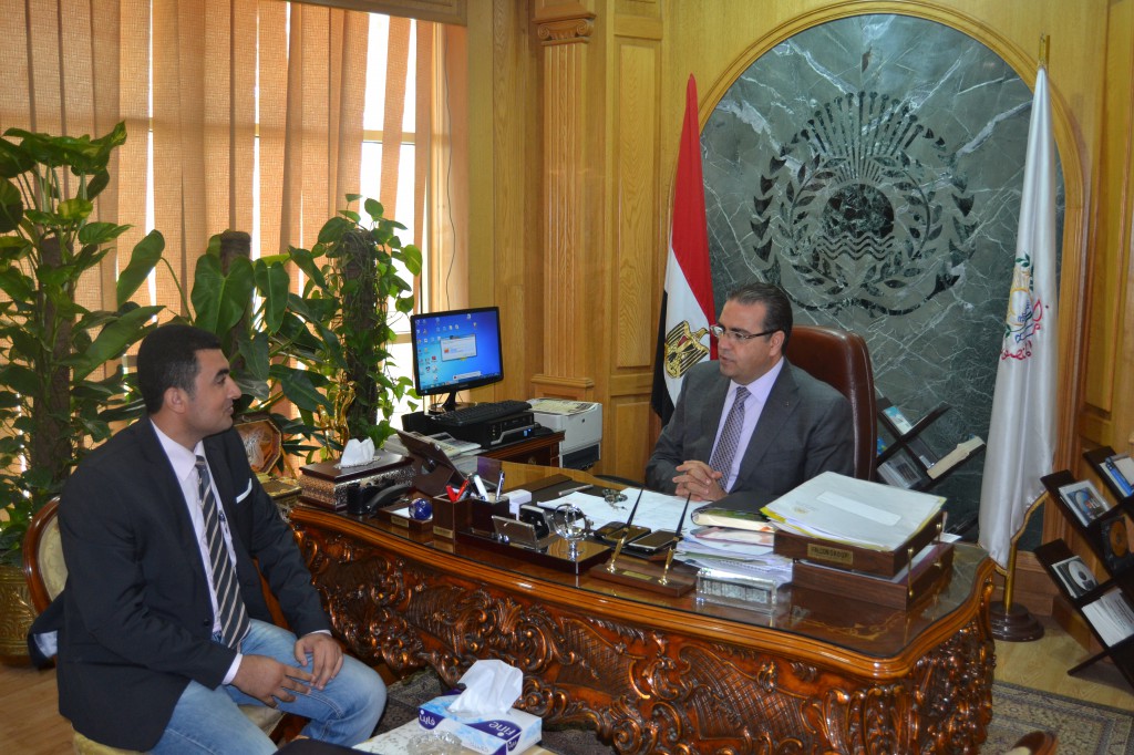 استقبل الدكتور محمد القناوى رئيس جامعة المنصورة الدكتور هيثم سيد احمد العطفى مدرس بقسم الجيولوجيا بكلية العلوم لتكريمه لحصوله على جائزة أحسن باحث شاب للعام 2014 م بألمانيا نظرا لتقديمه مجموعة من الابحاث التى لها علاقة بجيولوجية اوضع البترولي فى منطقة خليج السويس اثناء اجراء رسالة الدكتوراه الخاصة به بجامعة فرانكفورت بألمانيا .
