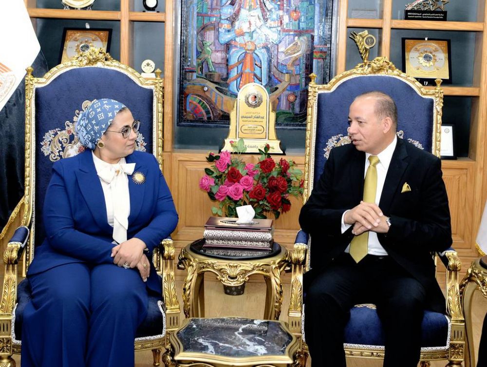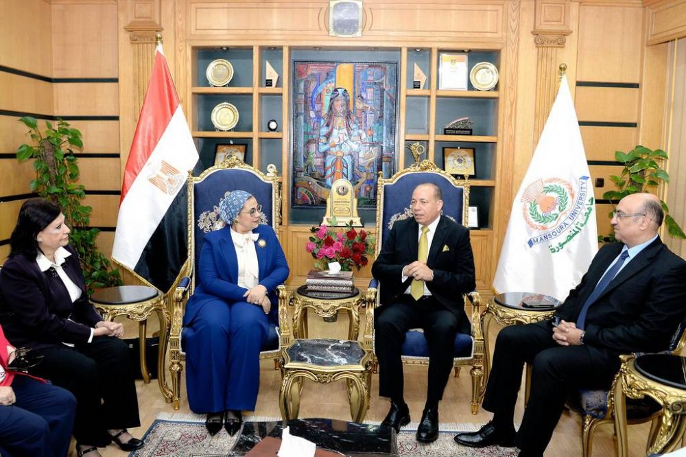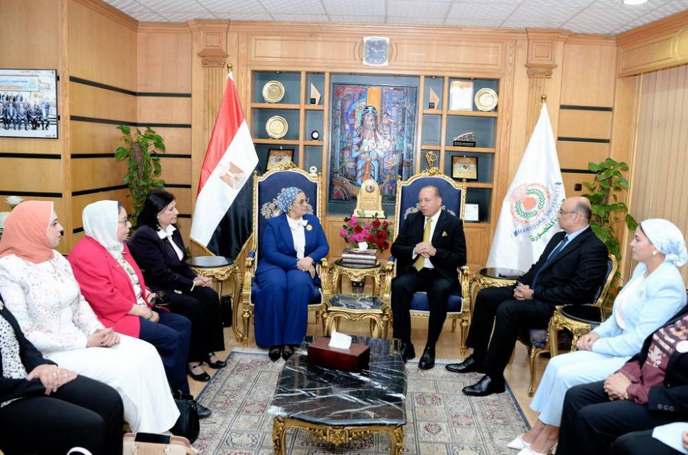 رئيس جامعة المنصورة يستقبل المستشارة أمل عمار خلال زيارتها لجامعة المنصورة