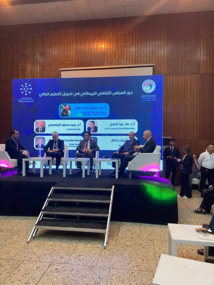 وشارك رئيس جامعة المنصورة في الجلسة الحوارية التي عُقدت تحت عنوان: «دور المجلس الثقافي البريطاني في تدويل التعليم العالي»، لاستعراض تجارب تدويل الجامعات، بمشاركة كلٍّ من: الدكتور علاء عبد الحسن، مستشار وزارة التعليم العالي والبحث العلمي العراقية، والدكتور وحيد الإبراهيمي، رئيس جامعة الموصل، والدكتور "ريتشارد سندرلاند"، مدير المجلس الثقافي البريطاني في العراق، إلى جانب عددٍ من القيادات الأكاديمية والخبراء الدوليين، وقد تولّى إدارة الحوار الدكتور موفق ساجت سمير، مدير قسم المنظمات بدائرة البعثات والعلاقات الثقافية