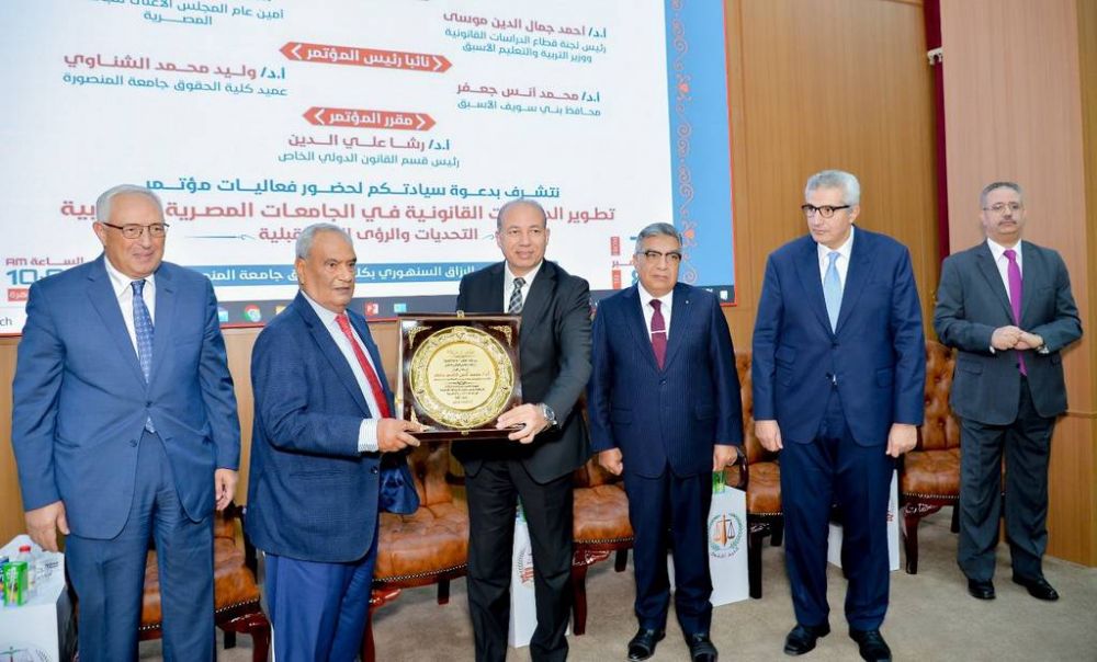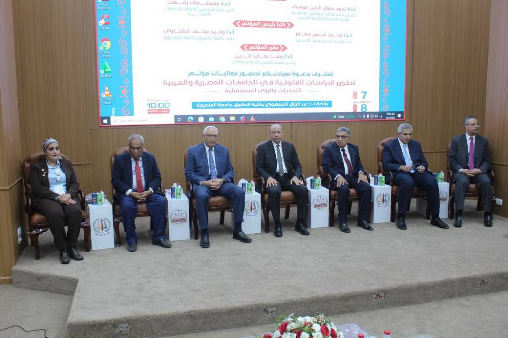 برعاية وزير التعليم العالي وبحضور محافظ الدقهلية وأمين المجلس الأعلى للجامعات رئيس جامعة المنصورة يفتتح مؤتمر «تطوير الدراسات القانونية في الجامعات المصرية والعربية»