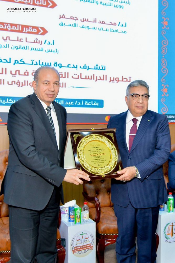 وأشار إلى أن تطوير الدراسات القانونية لم يعد خيارًا، بل أصبح ضرورة تفرضها التغيرات المتلاحقة في مجالات الذكاء الاصطناعي والتحول الرقمي والجرائم المستحدثة والاقتصاد الرقمي، مؤكدًا أن التعليم القانوني الحديث يجب أن يتجاوز الإطار التقليدي ليصبح تعليمًا تفاعليًّا قادرًا على تخريج كوادر قانونية تمتلك المهارات المهنية والبحثية، وقادرة على خدمة الدولة وترسيخ سيادة القانون.