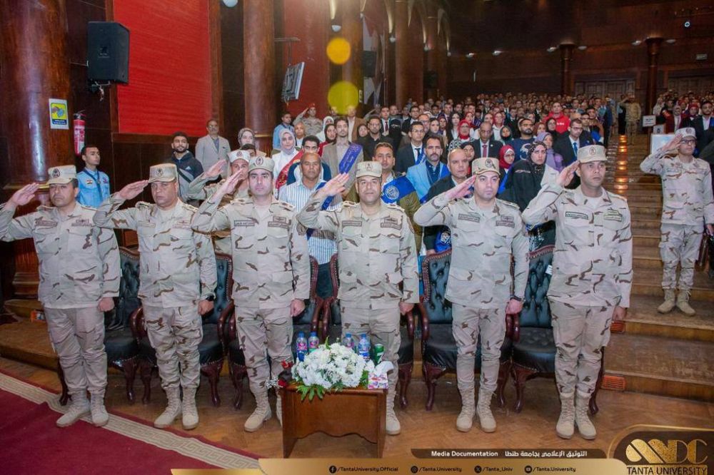 وفي ختام فعاليات الندوة، جرى تكريم أسر الشهداء، والطلاب من ذوي الهمم، والطلاب المتميزين، وقام اللواء أركان حرب هشام حسني حسن، قائد قوات الدفاع الشعبي والعسكري، والدكتور محمد حسين، رئيس جامعة طنطا، بتبادل الدروع التذكارية.